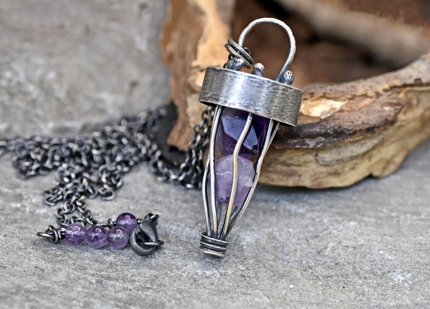 Art jewelry crafted from copper, sterling silver and natural gemstones