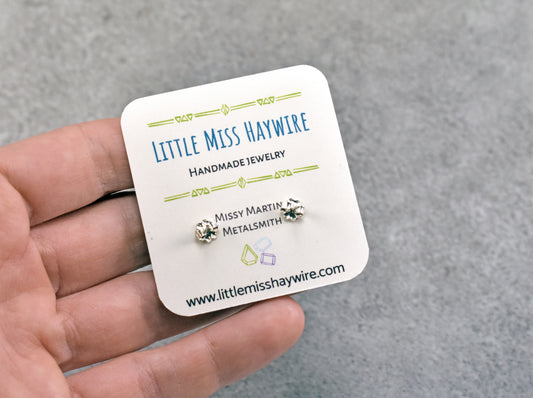 Simple Sterling Silver Gemstone Stud Earrings, Artisan Handmade Post Earrings