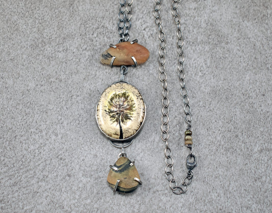 Ceramic and Lake Rock Statement Necklace, Rustic Earthy Silversmith Jewelry