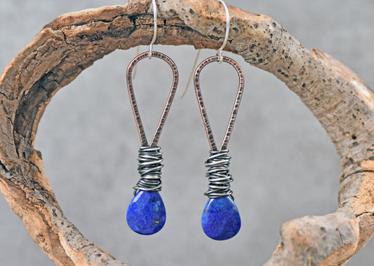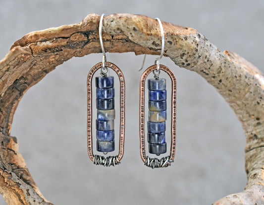 Blue Sodalite Mixed Metal Earrings, Copper and Sterling Silver Handmade Jewelry