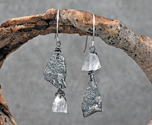 Raw Quartz and Sterling Silver Earrings, Organic Unusual Gemstone Artisan Jewelry
