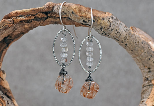 Red Rutile Quartz and Sterling Silver Artisan Earrings, Handmade Silversmith Jewelry