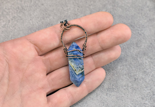 Sodalite Double Terminated Point Pendant, Blue Gemstone and Copper Necklace
