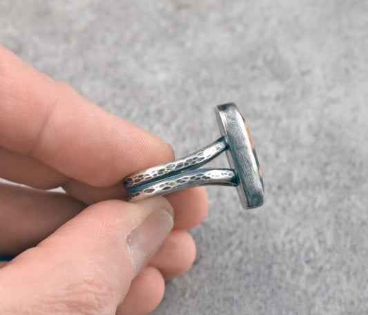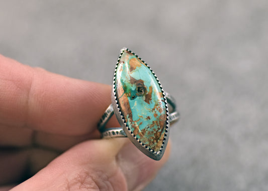 Turquoise Split Band Statement Ring, Size 8, Rustic Silversmith Jewelry