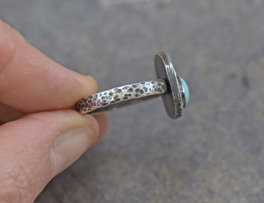 Turquoise Sterling Silver Ring Size 8.5, Artisan Silversmith Jewelry Handmade, Organic Unique Rustic Blue Gemstone