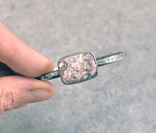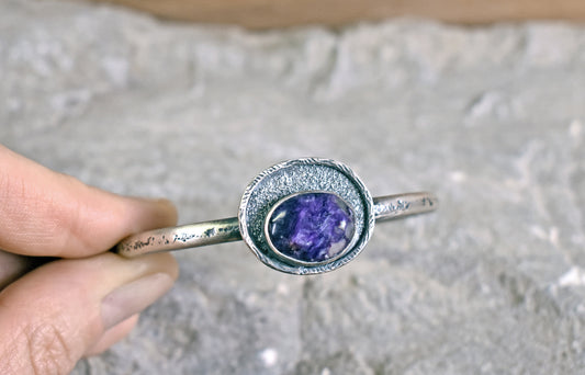Charoite Cuff, Size Small, Rustic Artisan Sterling Silver Bracelet Handmade, Unique Purple Gemstone Jewelry