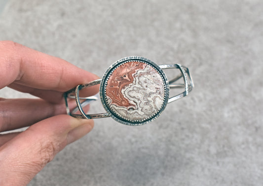 Crazy Lace Agate and Sterling Silver Cuff Bracelet, Size Small