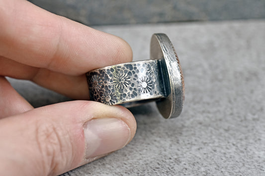 Fossilized Coral Sterling Silver Wide Band Statement Ring, Size 8.5