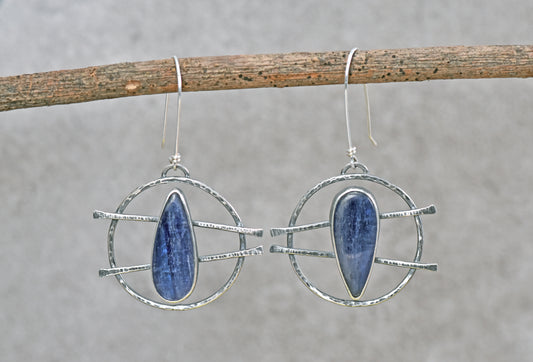 Large Kyanite and Sterling Silver Circle Statement Dangle Earrings