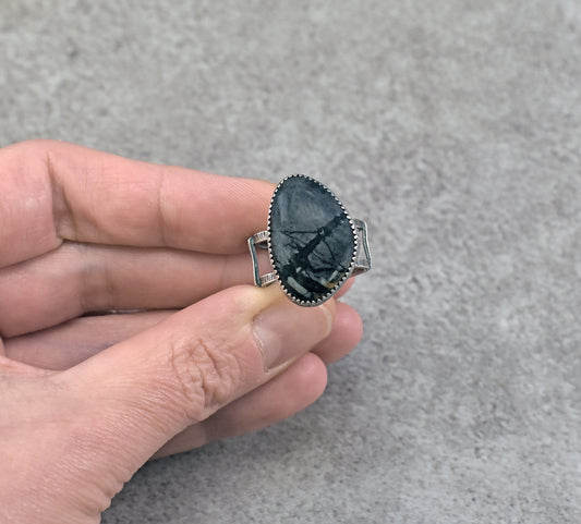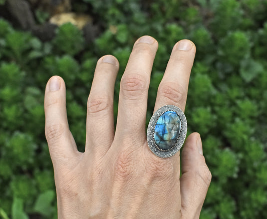 Sterling Silver Labradorite Statement Ring, Size 8.5