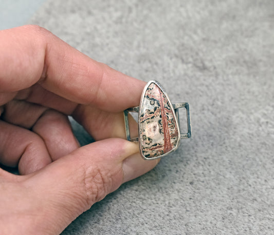 Picasso Jasper and Sterling Silver Wide Band Statement Ring, Size 8.25