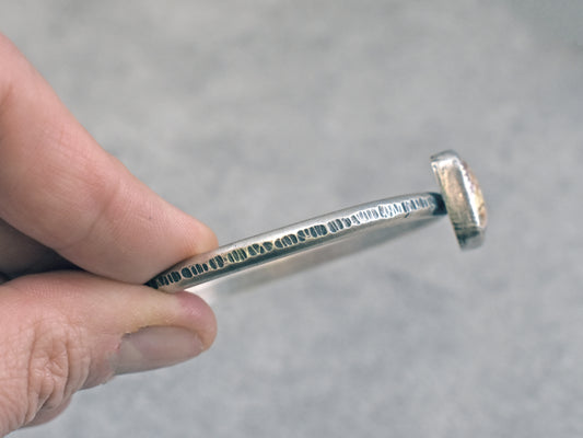 Agate and Sterling Silver Cuff Bracelet, Size Small, Rustic Artisan Silversmith Jewelry