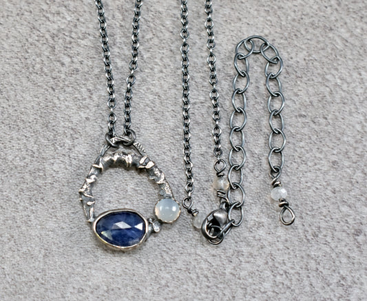 Small Blue Sapphire, Moonstone and Sterling Silver Necklace