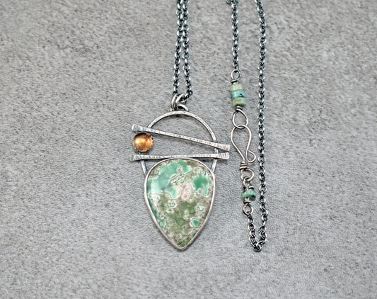 Variscite, Citrine and Sterling Silver Necklace, Rustic Silversmith Pendant, Artisan Handmade Jewelry