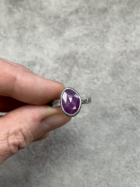 Faceted Pink Sapphire and Sterling Silver Ring, Size 7, Natural Gemstone Silversmith Jewelry
