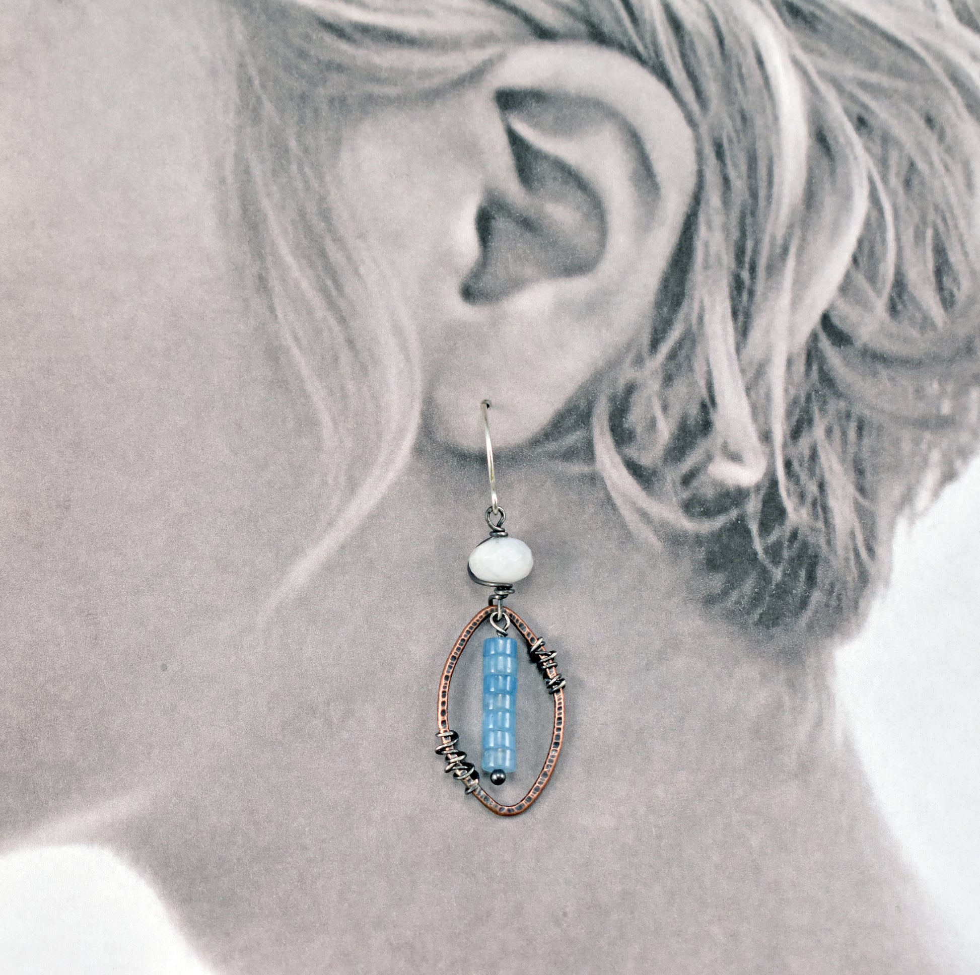 Aquamarine and Moonstone Mixed Metal Earrings, Artisan Copper and Sterling Silver Handmade Jewelry