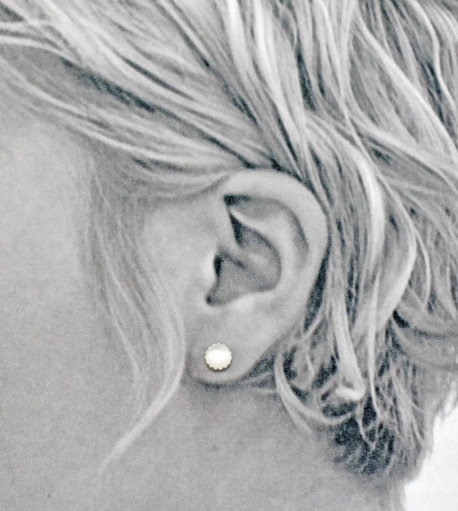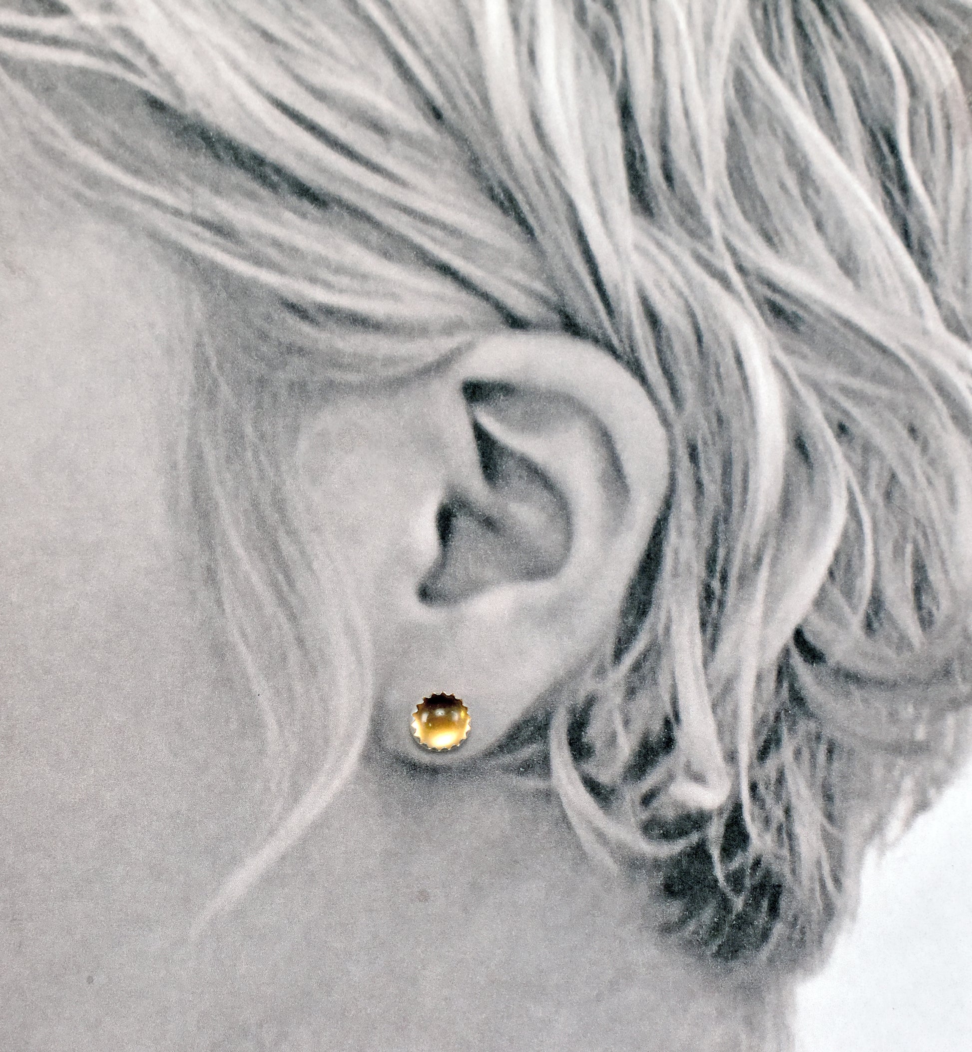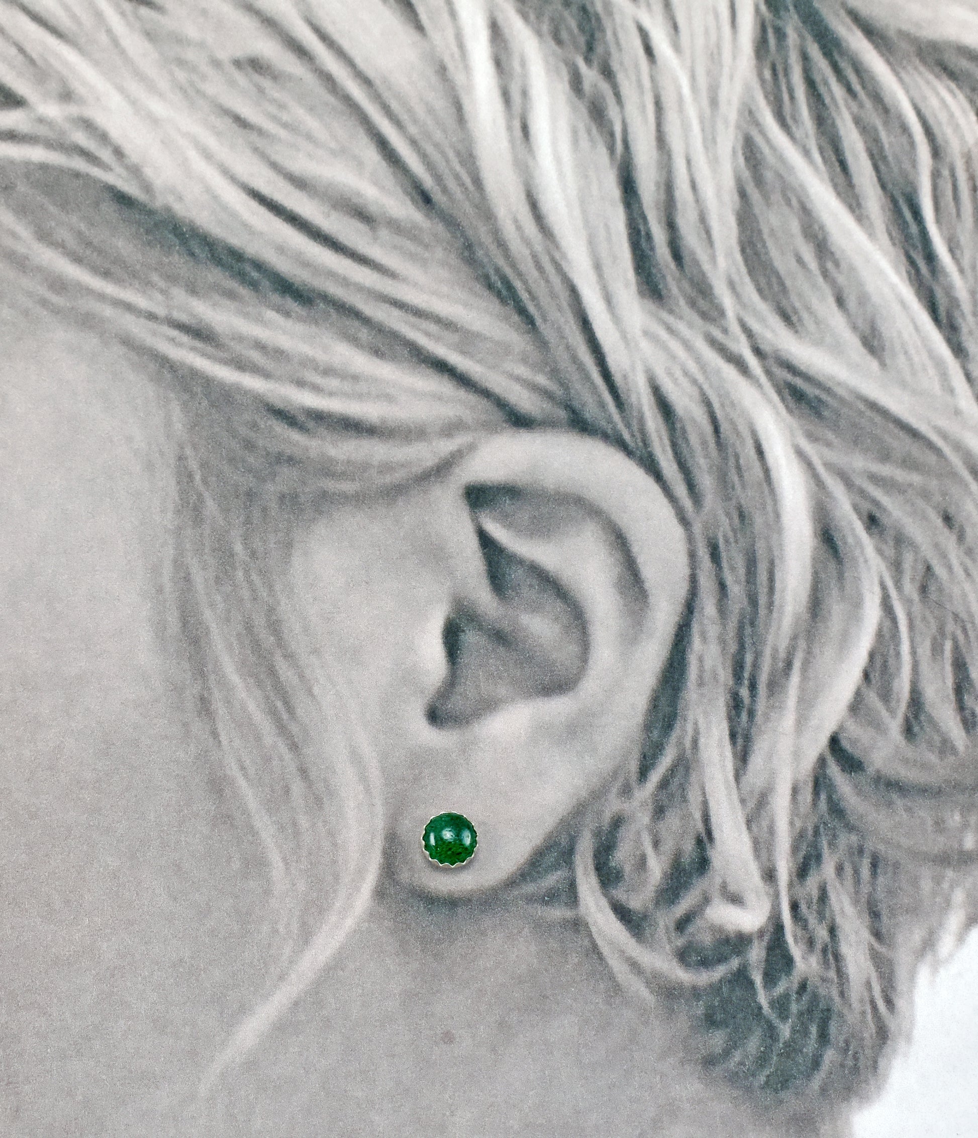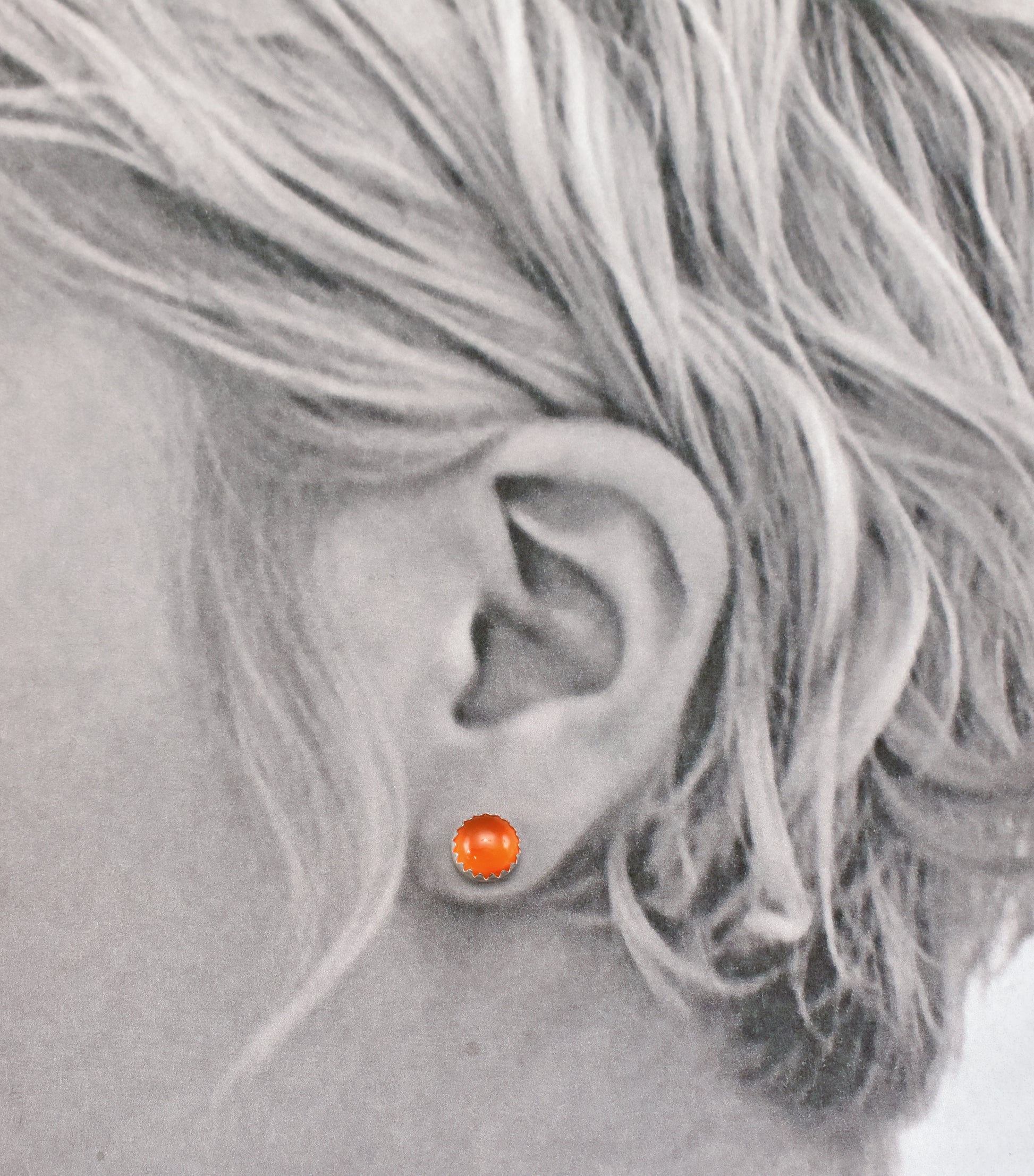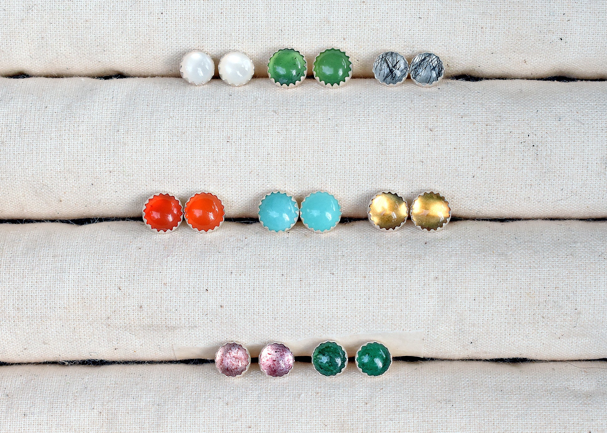 These cute little stud earrings are made with natural gemstones in hand-fabricated settings of sterling silver. The posts and ear nuts are also sterling silver. All stones are either 6 or 7mm in size.