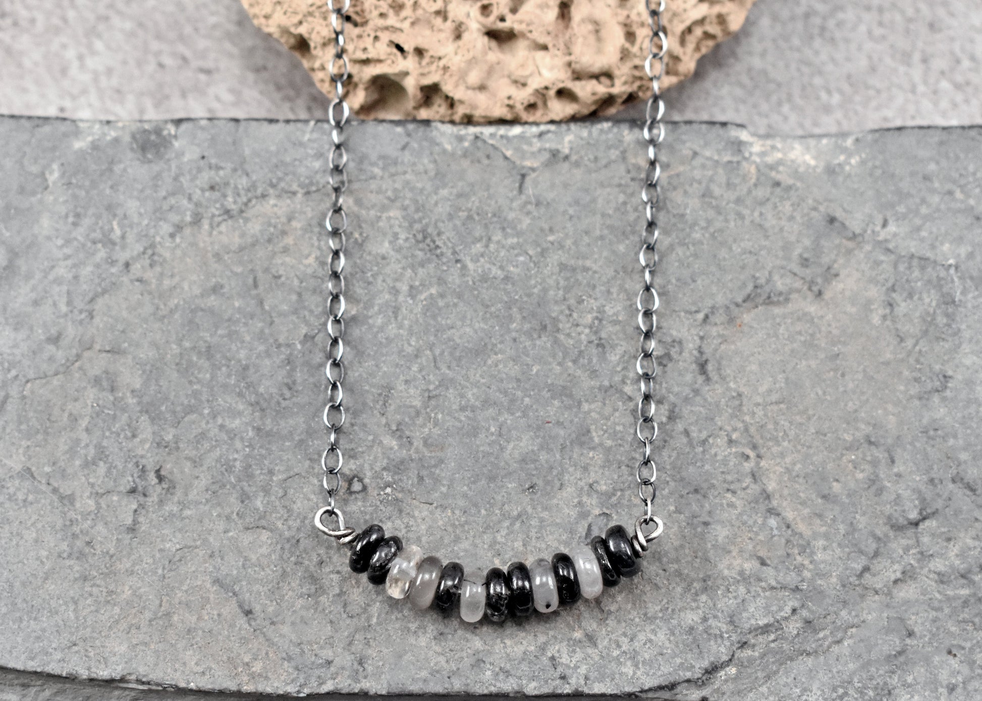 Simple Tourmalinated Quartz and Sterling Silver Necklace, Natural Rustic Black and White Gemstone Jewelry
